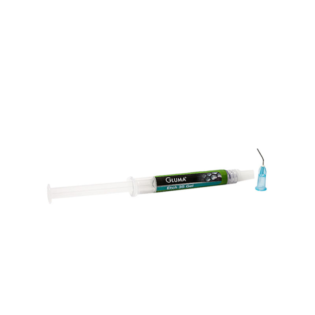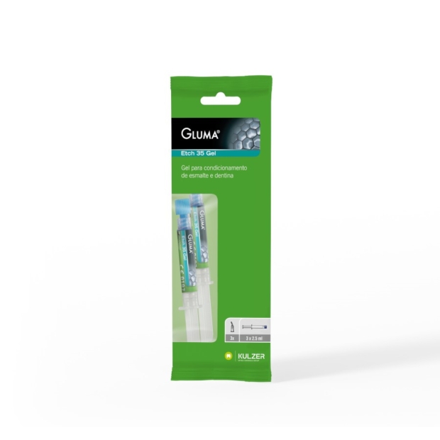 O Gluma Etch 35% Gel da Kulzer é um condicionador ácido do esmalte e dentina em tratamentos restauradores adesivos odontológicos. À base de ácido ortofosfórico, conta com indicação de uso na técnica de condicionamento total ou na técnica de condicionamento seletivo em esmalte e, antes da aplicação do adesivo, em: